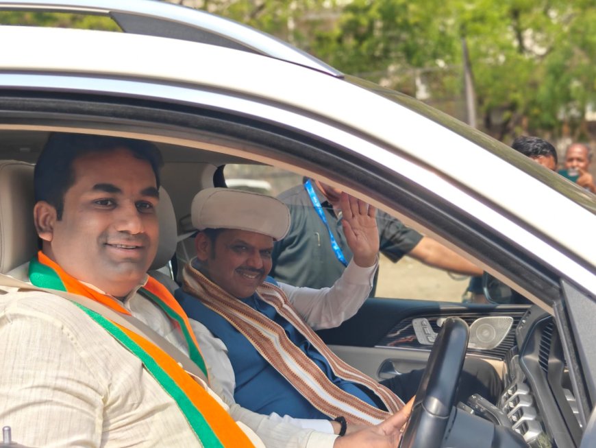 मुख्यमंत्री देवेंद्र फडणवीस यांची ह.दे.प्रशालेवरील सभा आटोपून विमानतळाकडे निघाले, तेव्हा युवा आ.देवेंद्र कोठे यांनी त्यांचे सारथ्य केले. समाजमाध्यमावर हे छायाचित्र व्हायरल झाले असून अनेकांचे लक्ष वेधून घेत आहे. फडणवीस यांनी हात उंचावून दाद दिली आहे.